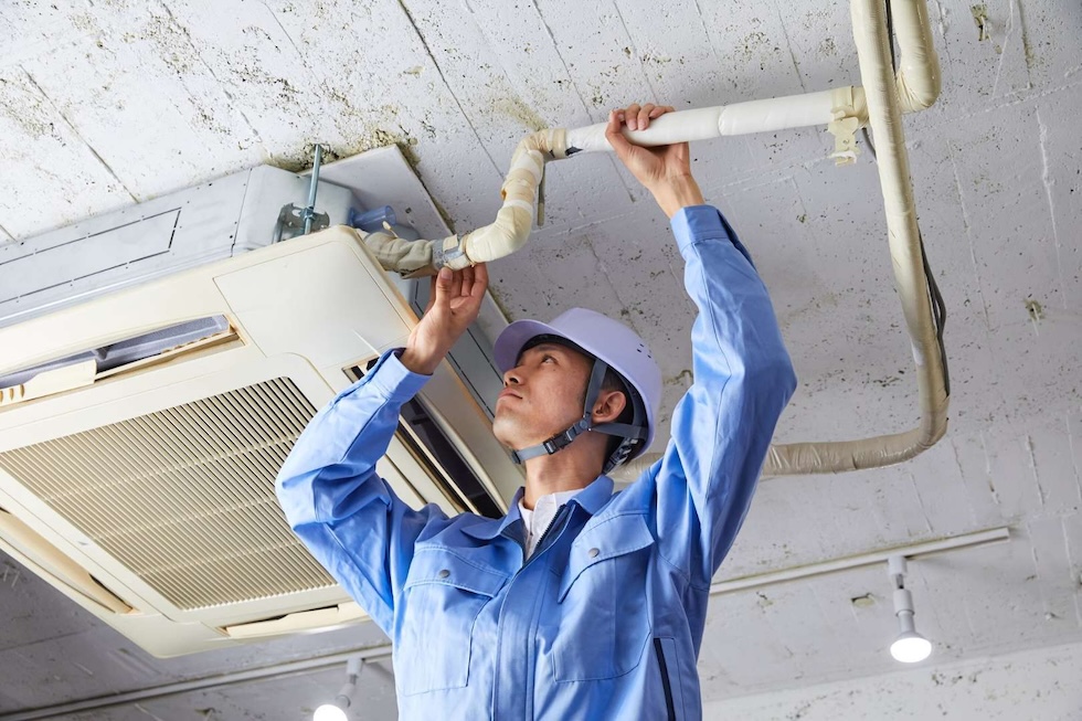 翔進テックは、松山市を中心に法人向けの空調設備工事・入替・修理・メンテナンスを専門に行う空調のプロ集団です。「店舗が暑い」「電気代が高い」「においが気になる」などの現場課題を、豊富な経験と確かな施工技術でスピード解決。業務用エアコンの入替・新設はもちろん、緊急対応・定期メンテナンスにも対応しています。建築会社や不動産管理会社との協業も多く、複数店舗・施設のまとめ工事にも強みを発揮します。